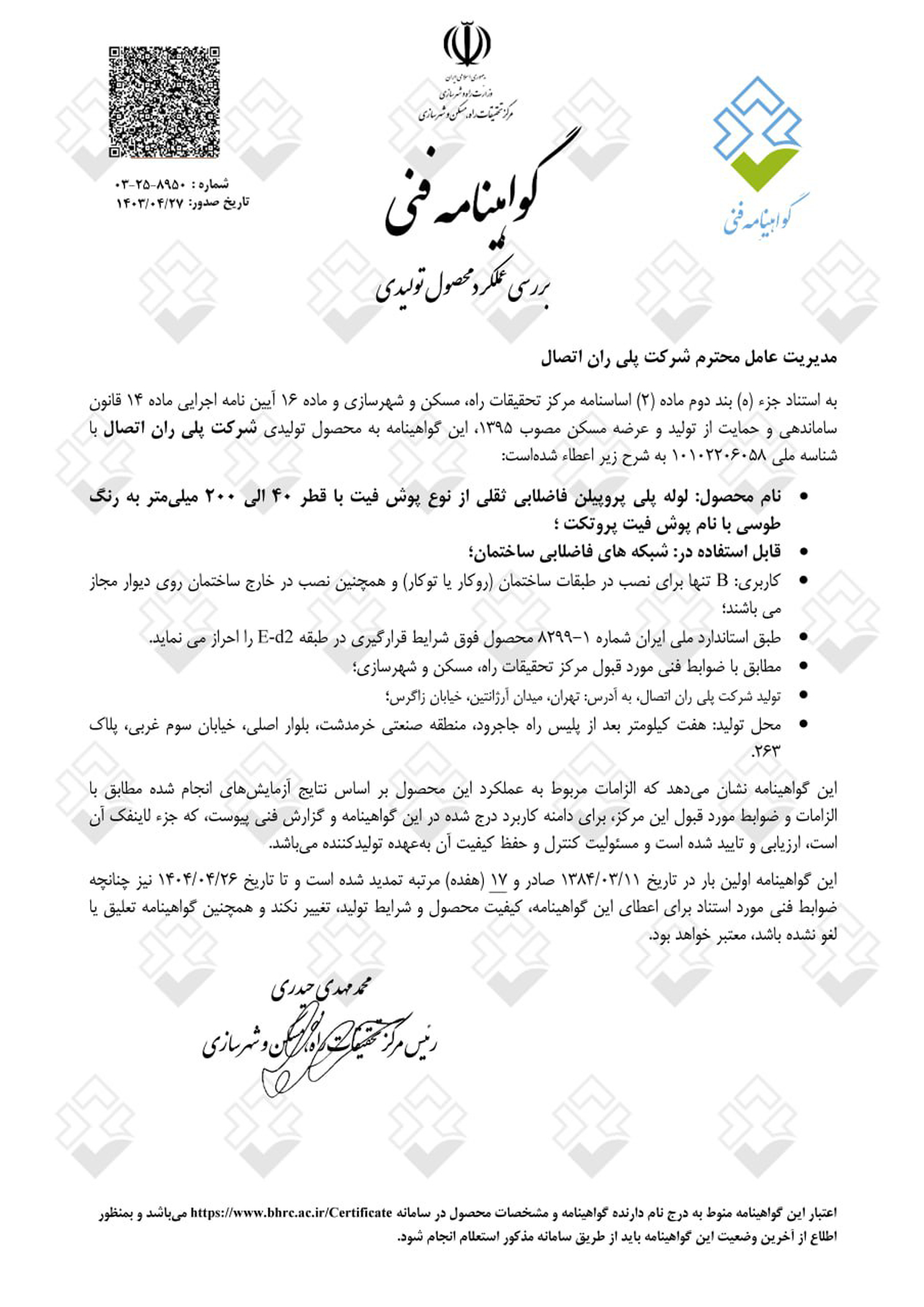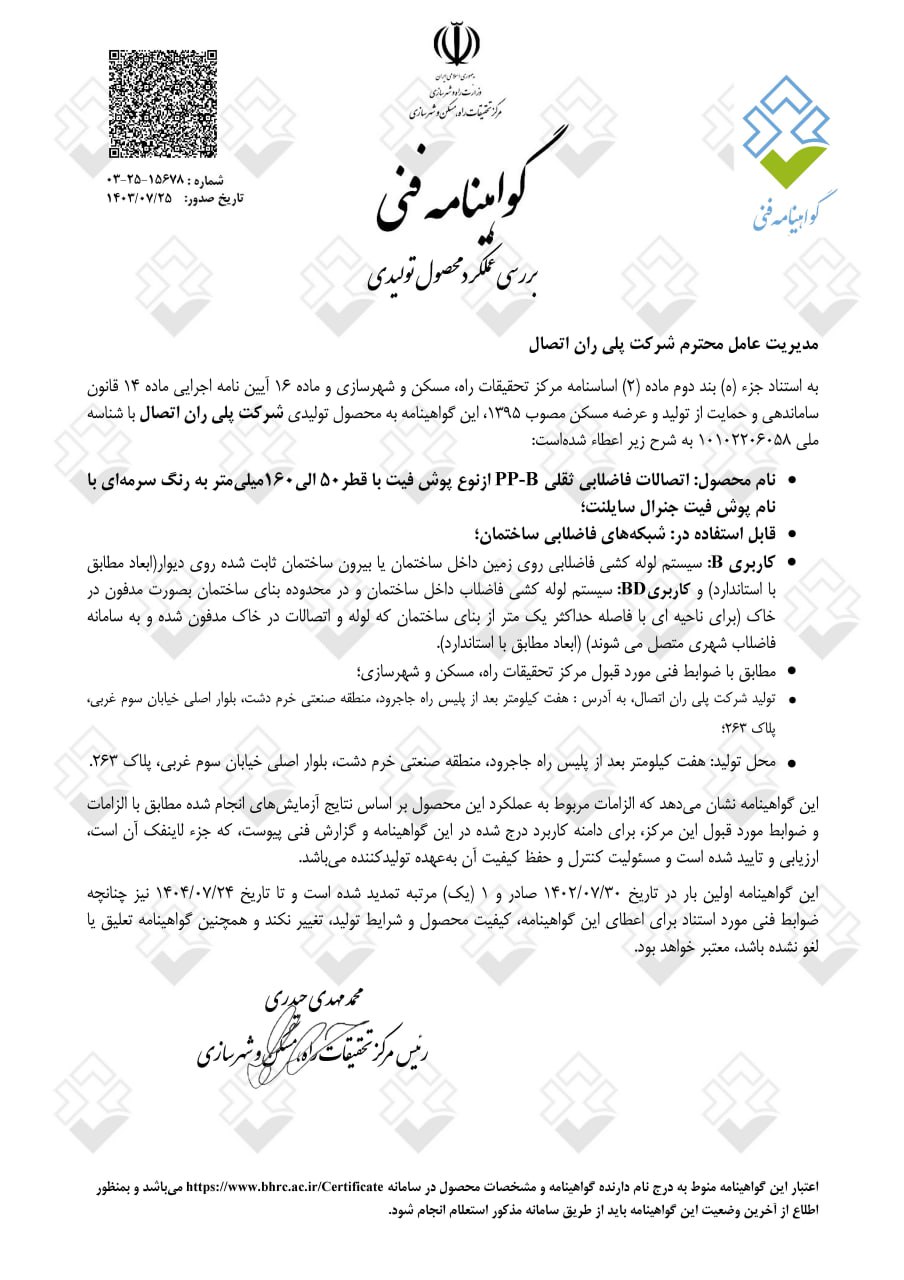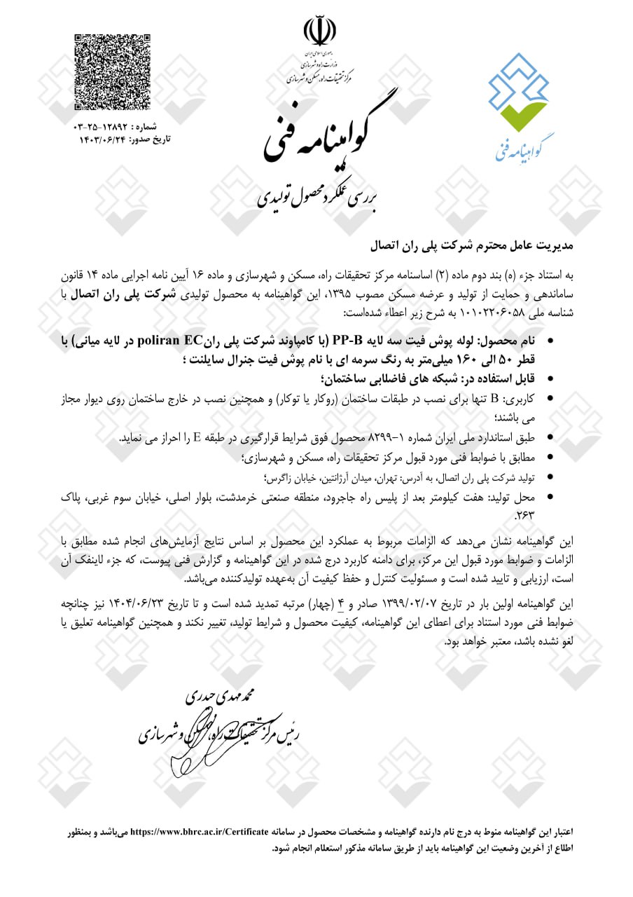 تأسست شركة بلي ران في أوائل سبعينيات القرن الماضي بهدف إحداث ثورة في صناعة أنابيب ووصلات البوليمر وتوسيع نطاقها في قطاعي الزراعة والبناء في البلاد. واليوم، وبعد أكثر من 50 عامًا، أصبحت بلي ران، بأربع وحدات تصنيع متطورة في منطقة جاجرود الصناعية بطهران، وحوالي 1000 موظف نشط، أكبر وأعرق شركة مصنعة لأنابيب ووصلات البوليمر في البلاد، ورائدة ومبتكرة في قطاعي الزراعة والبناء. ولطالما حظيت بحضور بارز في المشاريع الوطنية الضخمة في البلاد.